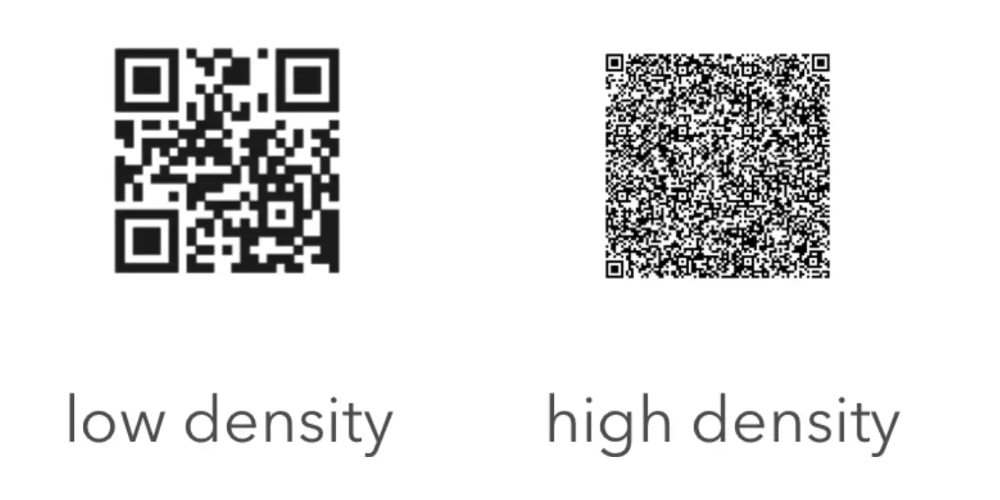 Adjust the QR code's physical size: If space allows, increasing the size of the QR code can reduce density issues. Our experience suggests that .8 inches is a practical minimum size for reliable scanning on most devices.