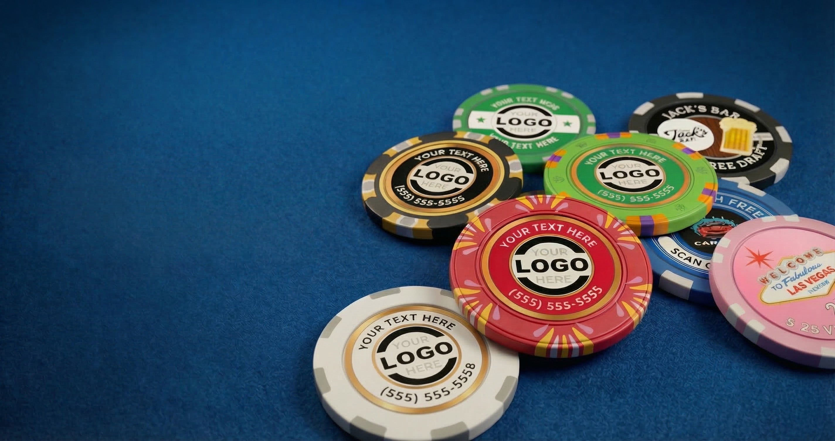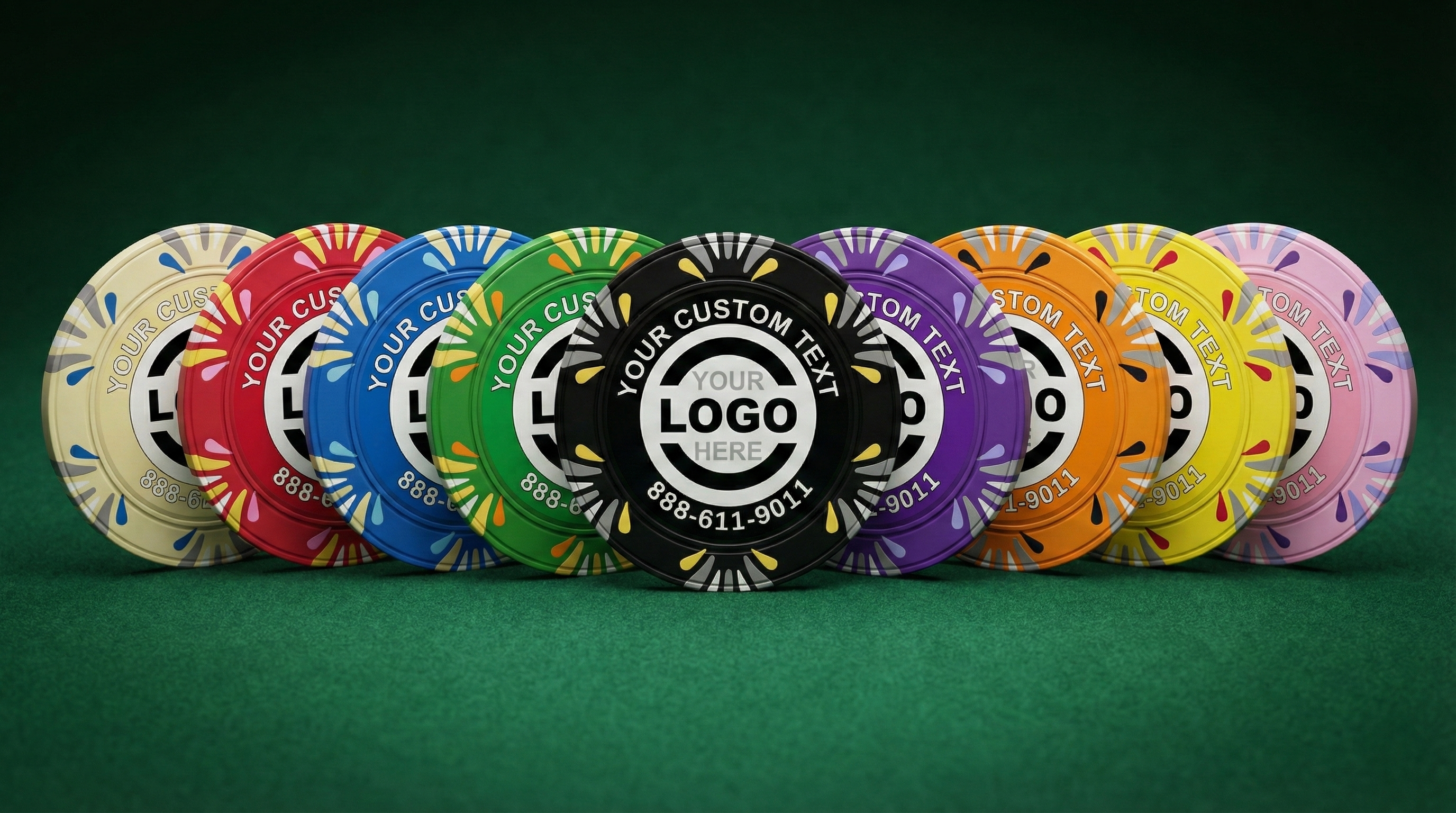 ChipLab is the fastest way to create custom poker chips online. Upload your design, pick your material, and we'll print and ship in as little as 1-4 days. We offer a 100% satisfaction guarantee, free online proofs, and rush delivery when you need it yesterday.